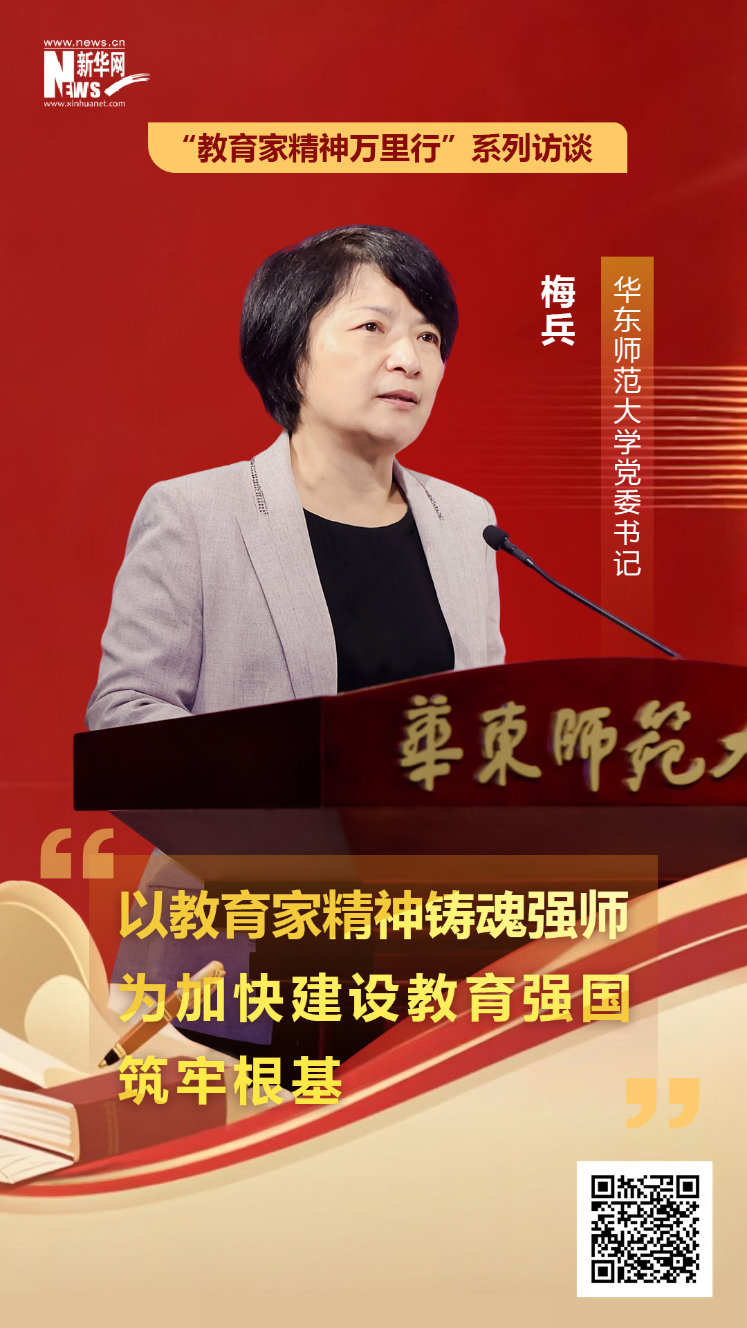 近日,華東師范大學黨委書記梅兵接受新華網(wǎng)專訪時,系統(tǒng)闡釋了實施教育家精神鑄魂強師行動對高校教師的新要求、學校弘揚教育家精神的創(chuàng)新舉措,以及高校筑牢教育家精神踐行主陣地、深化教師管理評價改革的路徑方向,為教育強國建設背景下的教師隊伍建設提供思路。