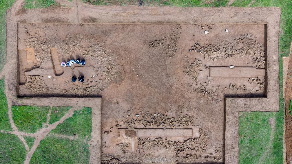 “兩個闕臺間留出的通道,正對門塾建筑大門,形成一條直指中心夯土臺的道路,初步判斷這就是當(dāng)時祭祀活動的通道?!备拭C省文物考古研究所助理館員段濤說,2025年春季,他們在北側(cè)相同位置又發(fā)現(xiàn)了形制一致的闕門遺跡。