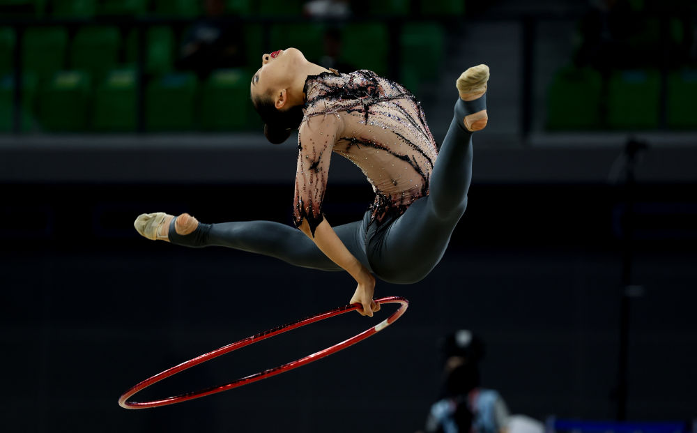 11月10日,陜西隊(duì)選手王子露在圈操比賽中。新華社記者 毛思倩 攝