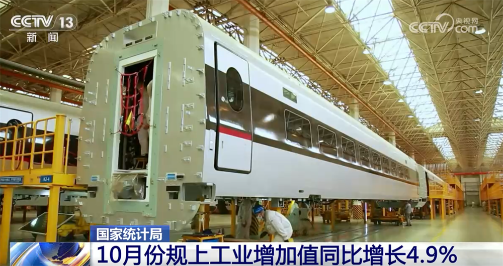 工業(yè)生產總體穩(wěn)定,10月份規(guī)模以上工業(yè)增加值同比增長4.9%,繼續(xù)保持總體穩(wěn)定增長。其中,裝備制造業(yè)增加值增長8%,明顯快于規(guī)模以上工業(yè)增長,對規(guī)模以上工業(yè)增長支撐作用明顯。