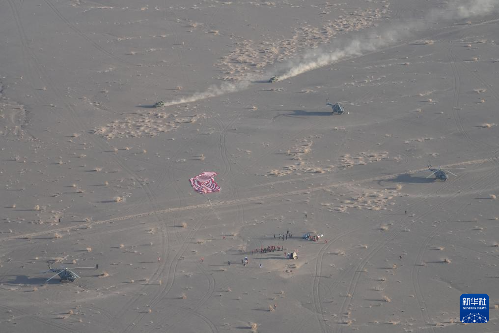11月14日,載著神舟二十號(hào)航天員乘組的神舟二十一號(hào)載人飛船返回艙在東風(fēng)著陸場(chǎng)成功著陸。新華社發(fā)(汪江波 攝)