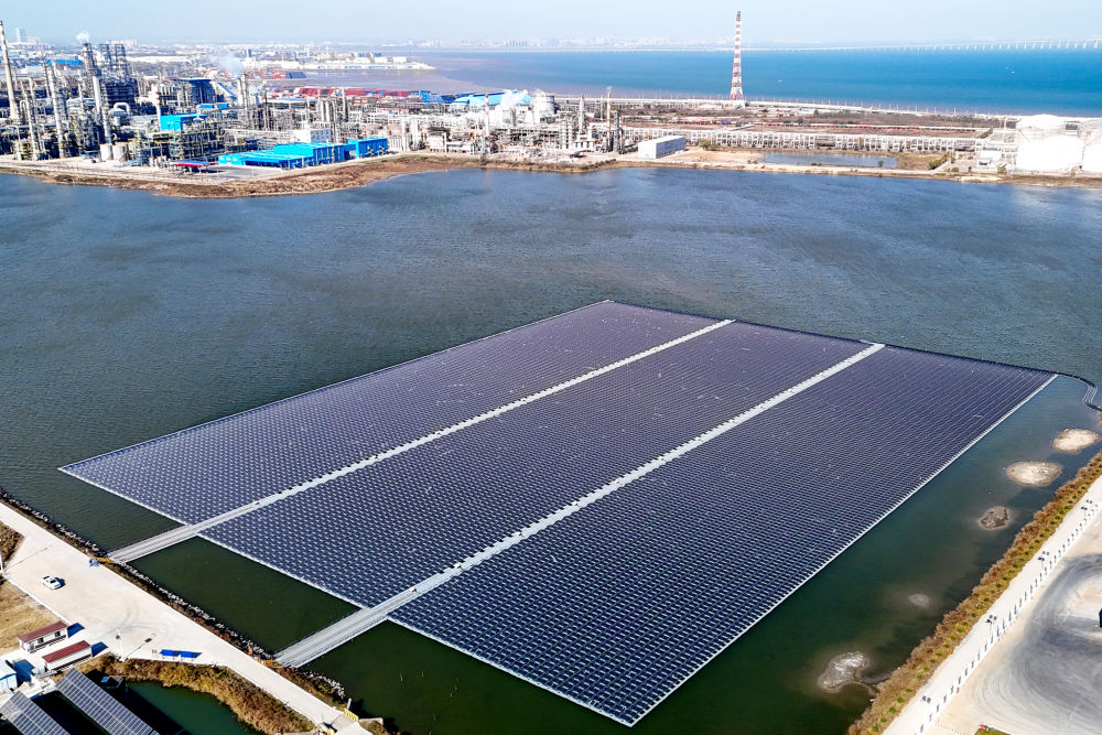 11月18日拍攝的中國(guó)石化青島煉化公司漂浮式光伏項(xiàng)目。新華社發(fā)(張進(jìn)剛攝)