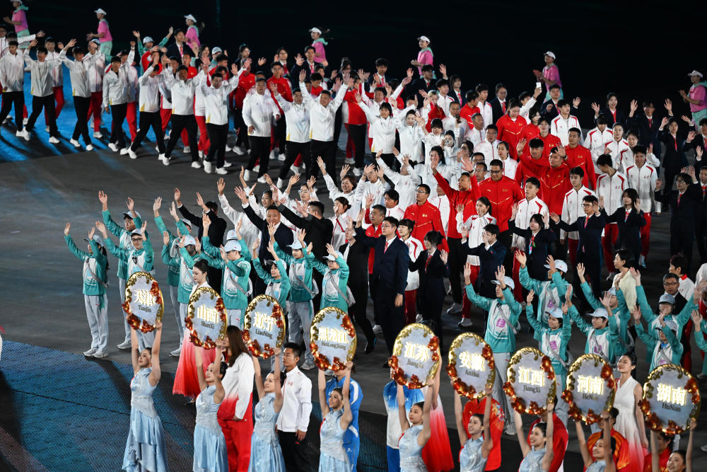 漫天星輝閃耀時(shí),萬千豪情競(jìng)風(fēng)流。馬龍、潘展樂、蘇炳添、王霜……熟悉的面孔接連出現(xiàn),來自五湖四海的運(yùn)動(dòng)員、教練員和裁判員一同入場(chǎng)。