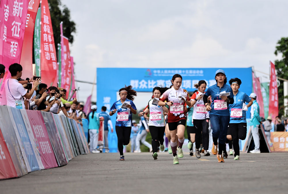 2025年5月8日,參賽選手在廣東云浮舉辦的第十五屆全國運(yùn)動會群眾賽事女子定向接力賽中出發(fā)。新華社記者 黃國保 攝