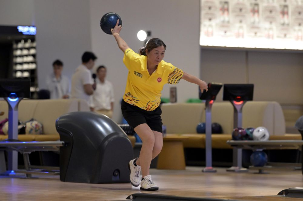 2025年8月11日,香港隊(duì)選手陳淑嫻在香港備戰(zhàn)第十五屆全運(yùn)會群眾比賽保齡球項(xiàng)目。新華社發(fā)(盧炳輝攝)