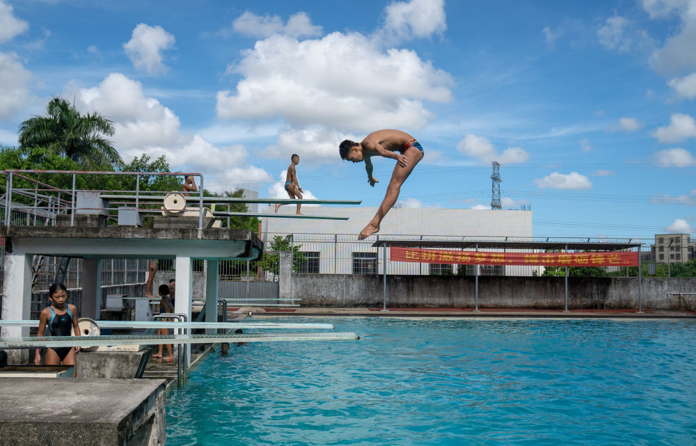 2021年9月2日,湛江市體校的跳水學(xué)員在進(jìn)行訓(xùn)練。新華社記者 周自揚(yáng) 攝