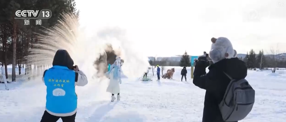 “潑水成冰”一直是北極村最受歡迎的冬季體驗項目之一。為提升體驗感與安全性,漠河近日開設(shè)了首家“潑水成冰工作室”,為游客提供特制潑水器具和主題旅拍服務(wù),并有教練現(xiàn)場免費指導(dǎo)。