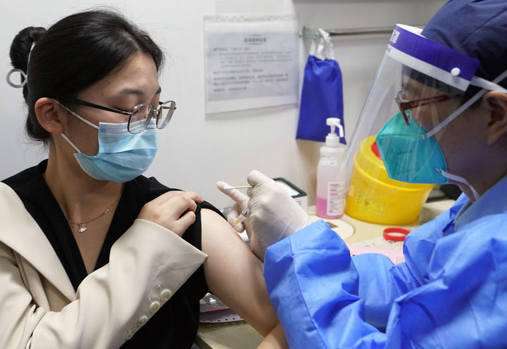 一名女士在復(fù)旦大學(xué)附屬婦產(chǎn)科醫(yī)院接種九價HPV疫苗(2022年11月11日攝)。新華社記者 劉穎 攝