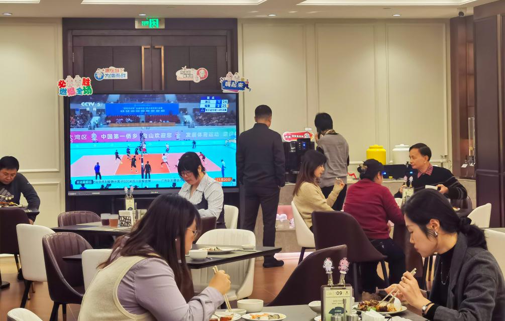 11月20日,游客在廣州一家餐廳內(nèi)用餐,一旁的電視正轉(zhuǎn)播全運(yùn)會(huì)比賽。新華社記者洪澤華 攝