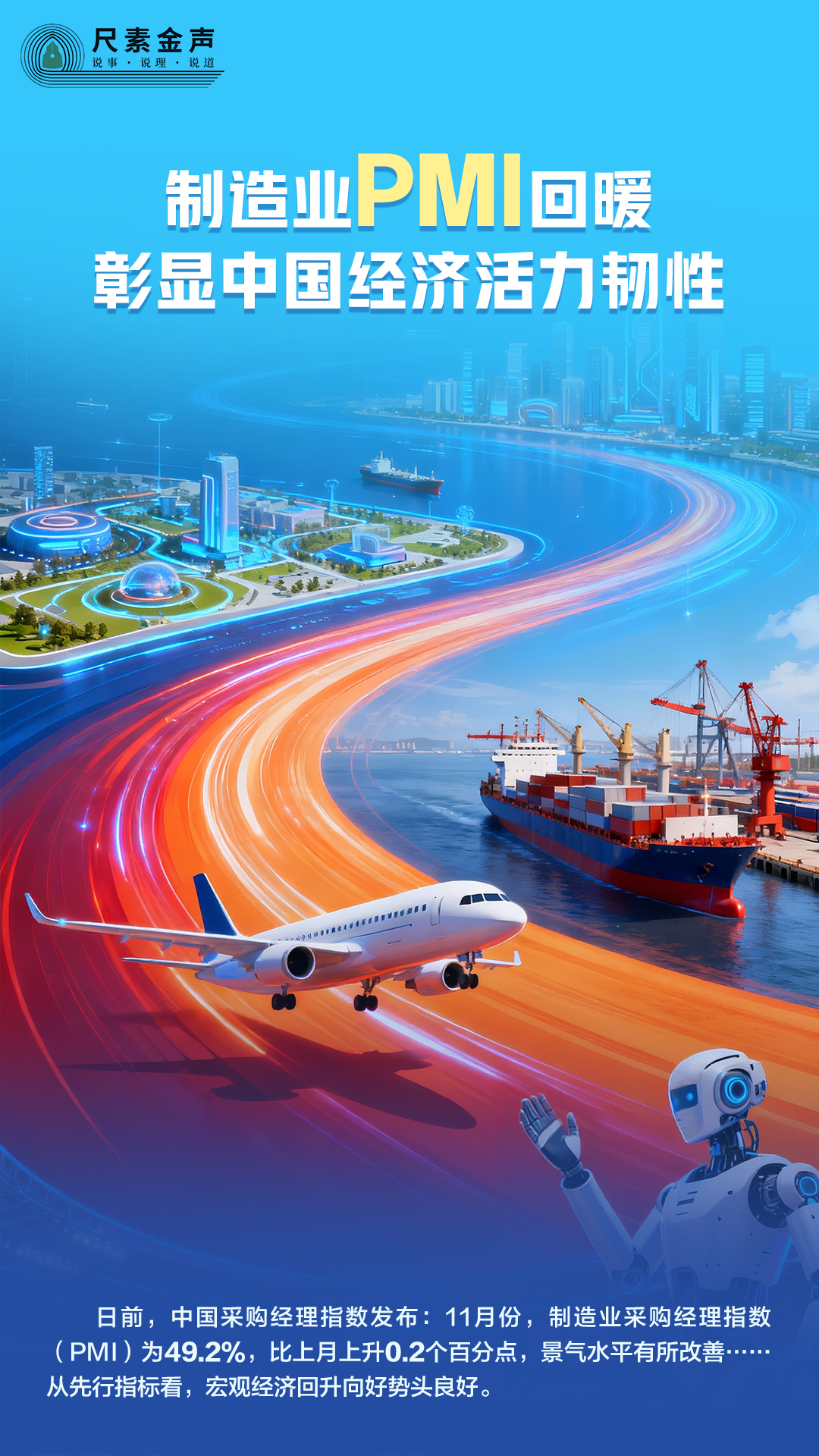 日前,中國采購經(jīng)理指數(shù)發(fā)布:11月份,制造業(yè)采購經(jīng)理指數(shù)(PMI)為49.2%,比上月上升0.2個百分點,景氣水平有所改善……從先行指標(biāo)看,宏觀經(jīng)濟回升向好勢頭良好。