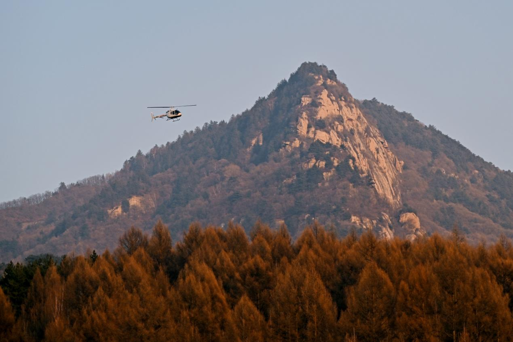 在大東溝森林旅游度假區(qū),游客搭乘直升機欣賞美景。新華網(wǎng) 發(fā)