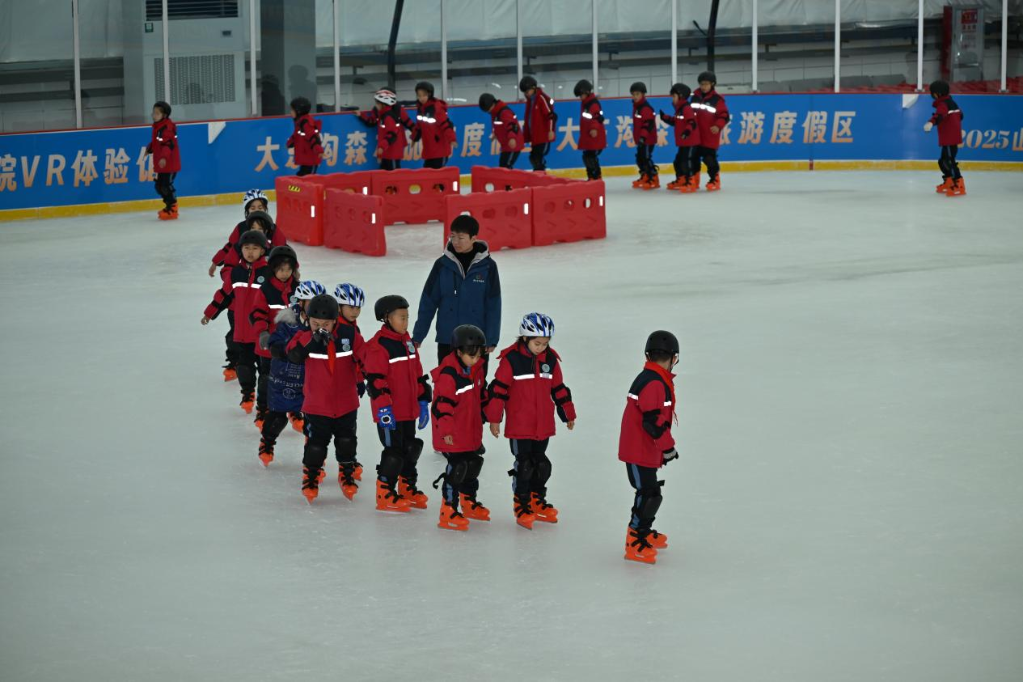 在王營莊文旅科創(chuàng)小鎮(zhèn)氣膜滑冰館,離石區(qū)一所小學的孩子們在體驗滑冰。新華網(wǎng) 發(fā)