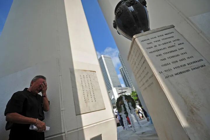 2015年2月15日,一位市民在新加坡美芝路戰(zhàn)爭(zhēng)紀(jì)念公園舉行的祭禮上悼念死難者。當(dāng)日,新加坡中華總商會(huì)舉行第48屆悼念日本占領(lǐng)時(shí)期死難人民祭禮。新華社發(fā)(鄧智煒攝)
