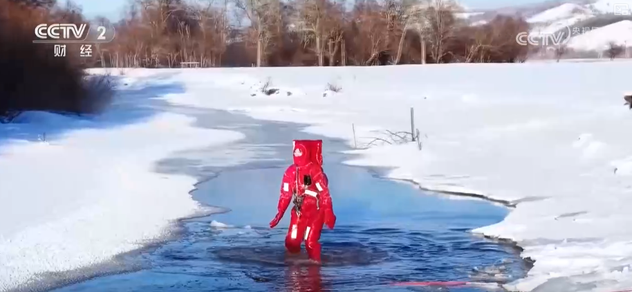 在內(nèi)蒙古還有一項獨特的極寒體驗——“躺冰”。零下40攝氏度的極寒環(huán)境中,吉爾布干河因地?zé)嵝纬闪霜毺氐牟粌龊泳坝^。依托這一獨特景觀,當?shù)赝瞥隽恕疤杀斌w驗,在安全員與救生員的全程保障下,游客身著專業(yè)抗寒服漂浮于冰河之中,在雪山與霧凇環(huán)繞間感受極寒中的美景。