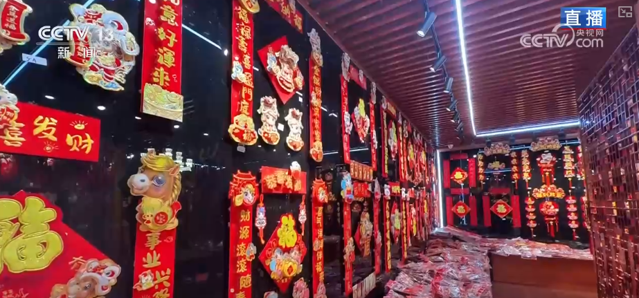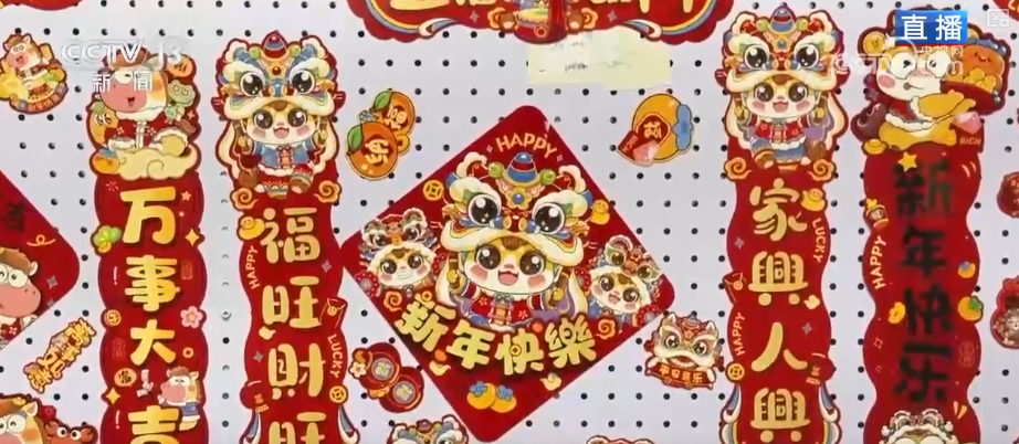 這張福字年畫是記者在義烏小商品城的喜慶用品專區(qū)“搶”到的。為什么說“搶”?因?yàn)楹芏酂衢T款式早就賣空了。義烏一直被叫做節(jié)慶用品的“風(fēng)向標(biāo)”,2025年流行什么、什么好賣,到這兒轉(zhuǎn)一圈心里就有數(shù)了。