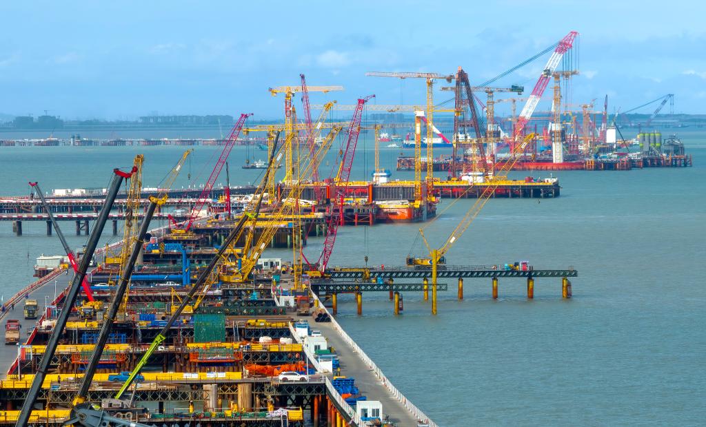 這是廈金大橋(廈門段)海上橋梁大規(guī)模裝配化施工現(xiàn)場(chǎng)(無人機(jī)照片,2025年6月13日攝)。新華社記者 魏培全 攝