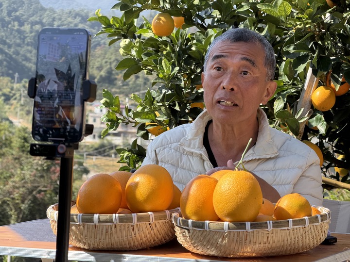 臺(tái)灣嘉義的王文瑞在祖籍地——江西贛州直播推介贛南臍橙,他的“臺(tái)灣阿公”新媒體賬號(hào)吸引全網(wǎng)超100萬粉絲關(guān)注。新華社記者 陳柱佐 攝