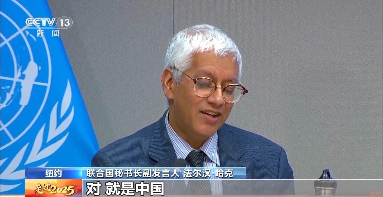 聯(lián)合國秘書長副發(fā)言人 法爾漢·哈克:我們想對最新足額繳納會費(fèi)的那個(gè)國家說聲謝謝,就是中國。