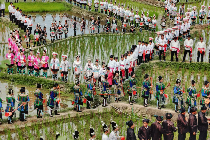 “村舞”薈萃了各族群眾的傳統舞蹈精華;“村BA”源自苗族“六月六”吃新節(jié)的傳統賽事,“村超”延續(xù)著榕江80年的民間足球熱情,“村馬”是水族端節(jié)千年傳承的賽馬習俗,“村歌”則扎根侗族大歌、苗族飛歌等的非遺土壤。