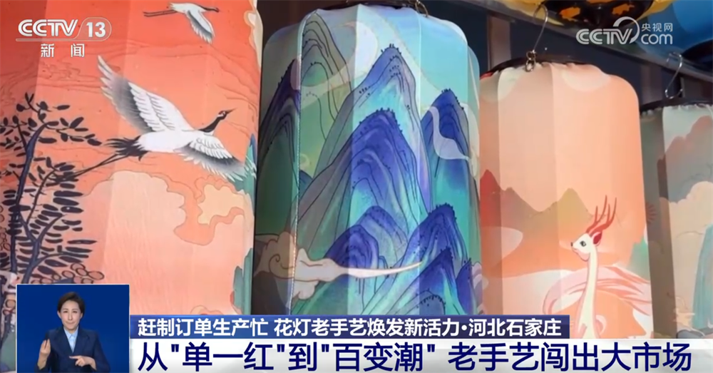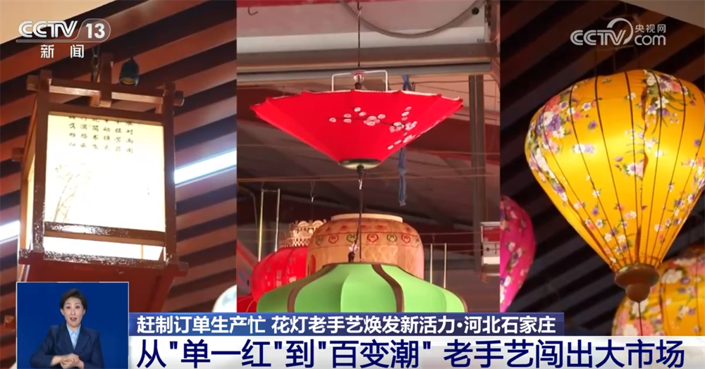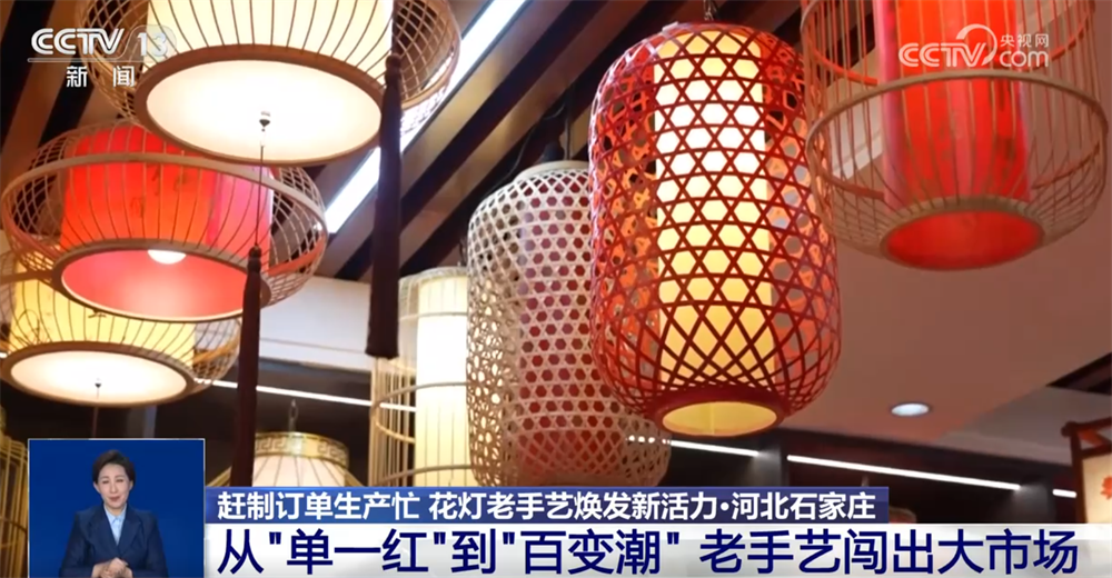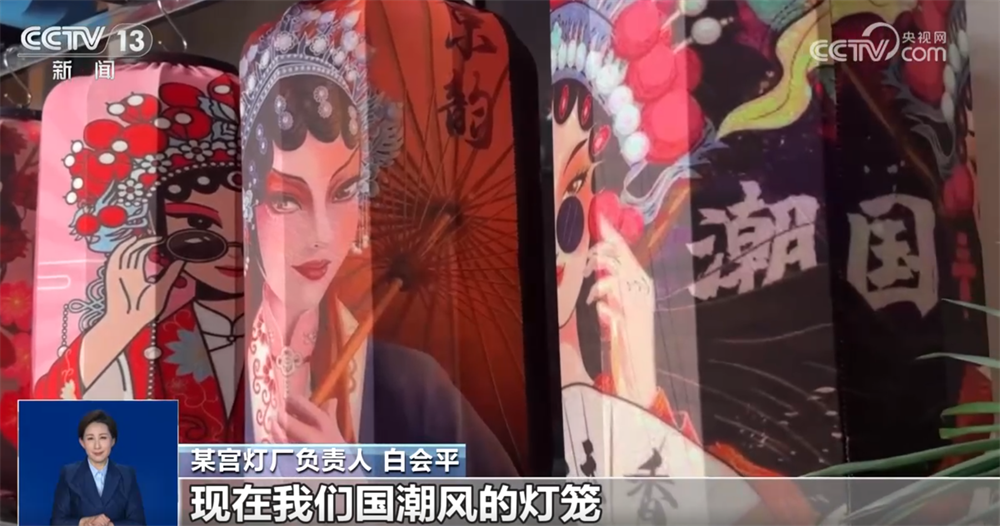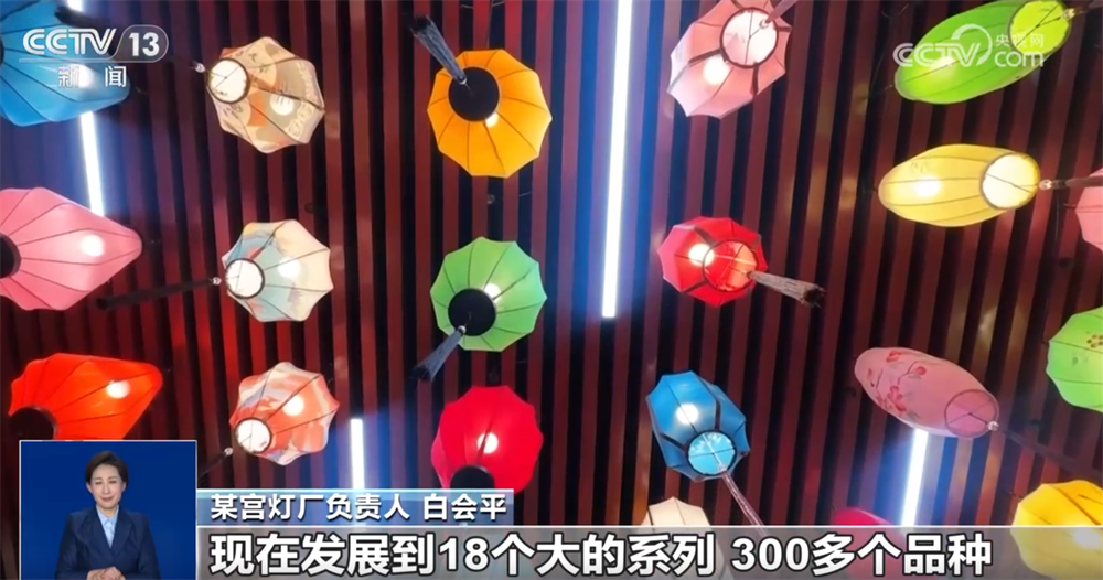 某宮燈廠負責人 白會平:通過跟大專院校合作,研發(fā)新的產品,每年都得有一個新的突破?,F在我們國潮風的燈籠特別受年輕消費群體的喜歡。原來我們是單一的幾個品種,現在發(fā)展到18個大的系列、300多個品種,而且根據客戶的要求還可以量身定做。