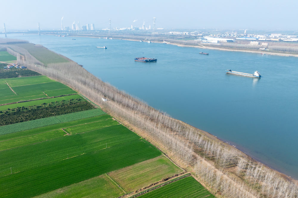 2026年1月6日在湖北省荊州市公安縣楊家廠鎮(zhèn)長江村拍攝的長江荊州段(無人機照片)。新華社記者 杜子璇 攝