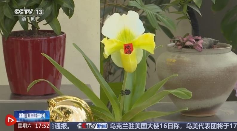 在北京花卉交易中心,各色年宵花爭(zhēng)奇斗艷。其中新品蘭花“兜蘭”十分惹眼,獨(dú)特的兜形花瓣里,被放入“順?biāo)臁薄敖】怠钡淖8?ㄆ⒁狻岸底№標(biāo)臁薄岸底〗】怠?,祝福滿滿,年味十足。野生兜蘭原本是珍稀植物,經(jīng)過(guò)多年人工馴化,品種產(chǎn)量快速增長(zhǎng),價(jià)格也從最初的近千元降至如今百元左右。