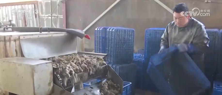 某水產(chǎn)公司負責人劉浩介紹,分揀之后就凈化,凈化之后用清洗機清洗,把泥沙清洗掉然后裝袋打包,幾乎每天加工五六萬斤。