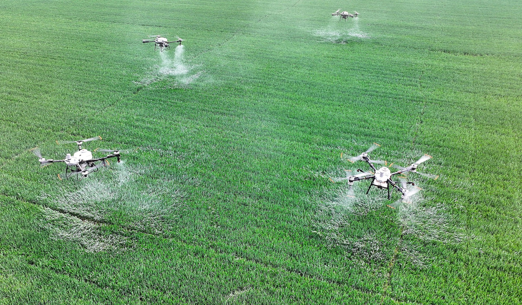 2025年4月9日,安徽省亳州市利辛縣永興鎮(zhèn)諸王社區(qū),種糧大戶利用植保無人機(jī)給小麥噴灑藥物。