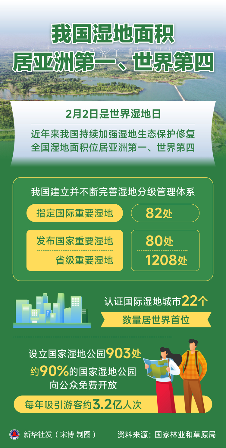 2月2日是世界濕地日。記者當天從國家林業(yè)和草原局獲悉,近年來我國持續(xù)加強濕地生態(tài)保護修復,全國濕地面積位居亞洲第一、世界第四,濕地保護形成重點治理和分類保護相結(jié)合的新格局。