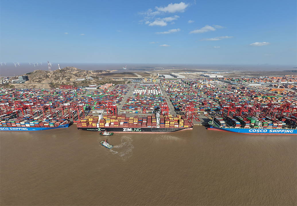 2025年12月8日無(wú)人機(jī)拍攝的上海洋山港一二期碼頭。 新華社 資料圖