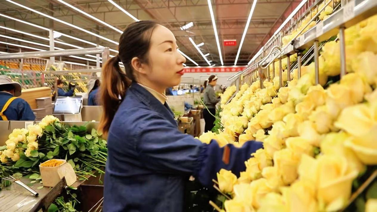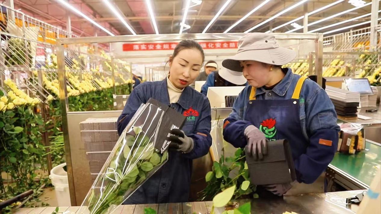 經(jīng)她們之手,高原玫瑰通過冷鏈物流,走向全國各地乃至海外。這讓張婷婷格外自豪:“我包的花有一天竟然能到國外。他們捧著它的時候,會是什么心情?會不會很開心?”
