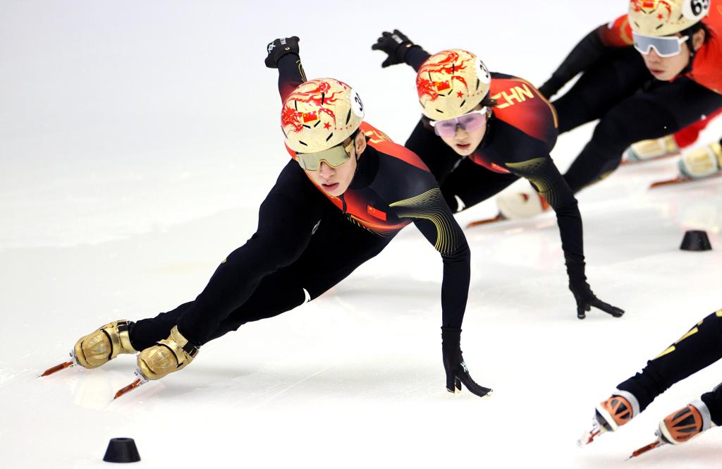 1月29日,中國短道速滑隊選手在訓練中。新華社記者 張晨 攝