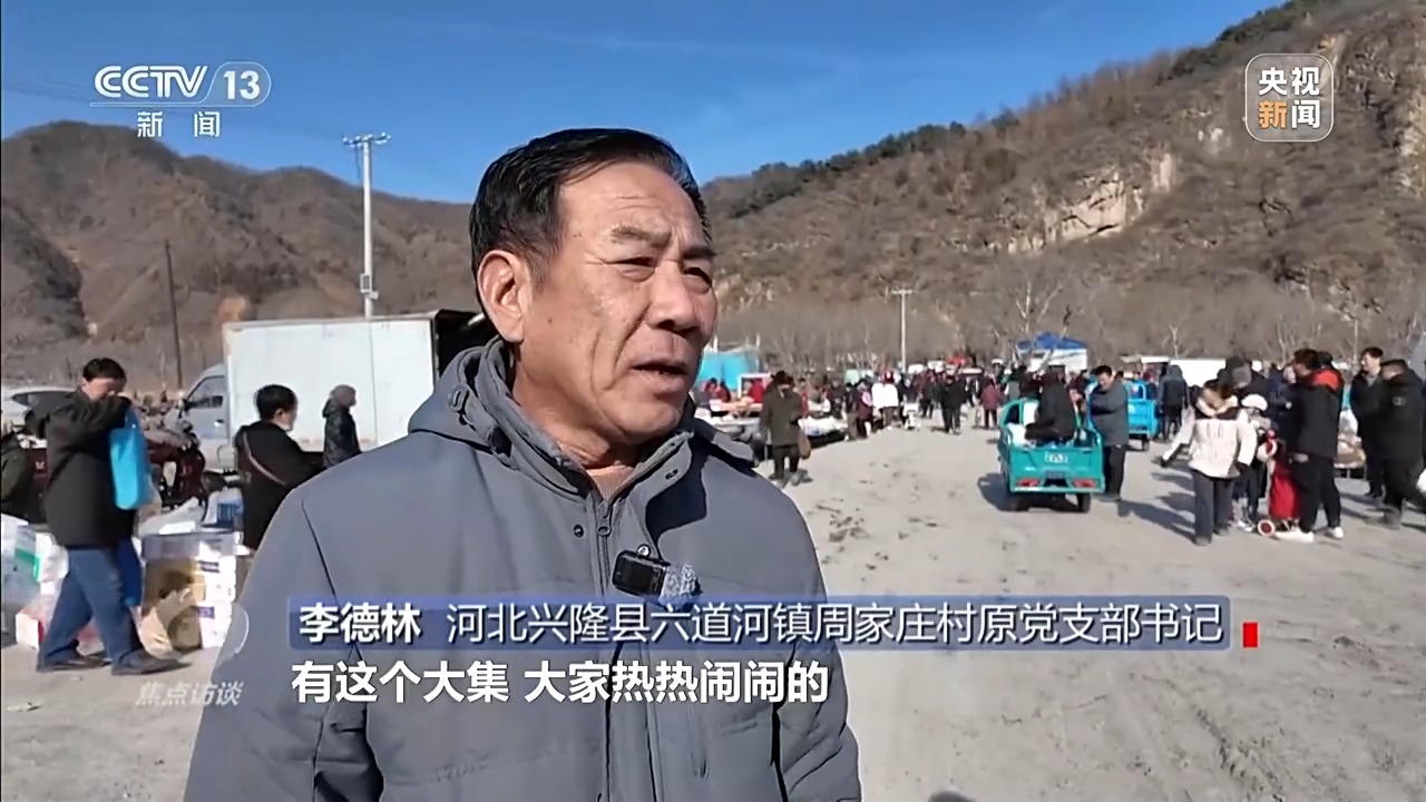 河北興隆縣六道河鎮(zhèn)周家莊村原黨支部書記 李德林:有這個大集,大家熱熱鬧鬧的,相互在這兒能見個面。農(nóng)村的大集和廟會就起這個作用,大家能見個面,買點東西也方便,人氣就上來了。