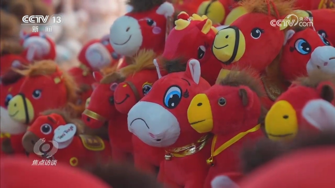 近年來,生肖文化、非遺主題的文創(chuàng)成為了新的過年硬通貨,給孩子帶上兩個馬年玩偶也是今年的潮流。在浙江義烏,今年春節(jié)年貨市場里,生肖經(jīng)濟日益火熱使得一款“哭哭馬”玩偶意外走紅。縫反嘴的“錯版小馬”委屈的表情不但沒有被消費者嫌棄,反而因為提供了獨特的情緒價值,很快就成了爆款。