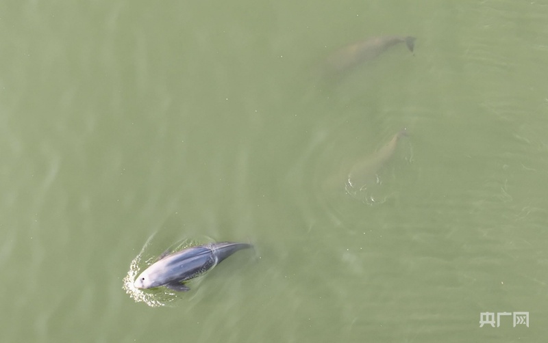 長江江豚在湘江長沙段逐浪(央廣網(wǎng)發(fā) 陳杰 攝)