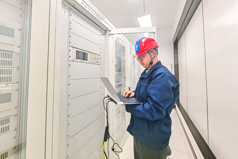↑ 2月16日,國網(wǎng)湖北超高壓公司工作人員在宜昌500千伏安福變電站對設(shè)備進行巡檢。新華社記者 肖藝九 攝