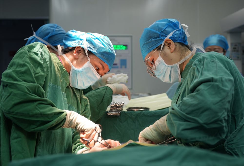 ↑ 2月16日,在廣西柳州市融水苗族自治縣人民醫(yī)院,醫(yī)護人員為患者做手術(shù)。新華社發(fā)(龍濤攝)