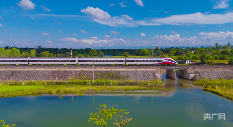 中老鐵路D87次國際旅客列車奔馳在老撾萬象(央廣網(wǎng)發(fā) 楊永全 攝)