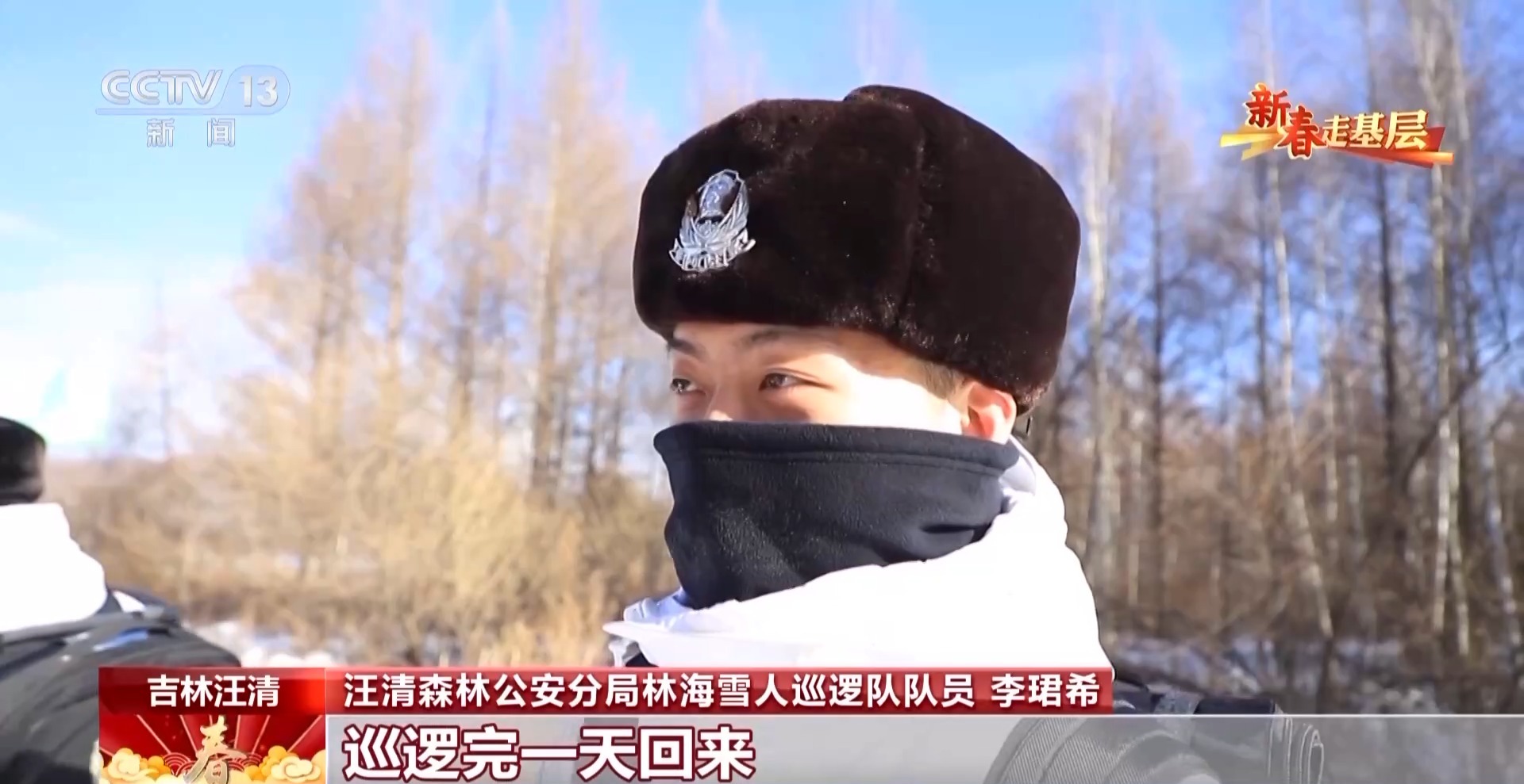 汪清森林公安分局林海雪人巡邏隊(duì)隊(duì)員 李珺希:走的時候其實(shí)感覺不到,巡邏完一天回來,感覺耳朵脹脹熱熱的,回來才發(fā)現(xiàn)凍傷了。