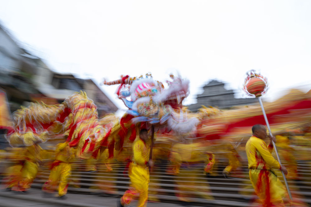 廣東中山游客王世杰一早便在大三巴牌坊前等著金龍?!盎洶奈幕嘟嗤ǎ贾v粵語、吃粵菜,都喜歡舞龍舞獅?!彼f,舞龍醒獅同臺獻(xiàn)瑞的傳統(tǒng),把節(jié)日喜慶氛圍“推向更高”。