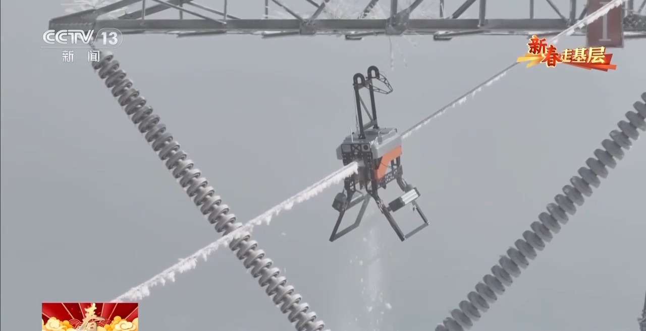不斷旋轉(zhuǎn)的履帶,是它的雙腳。它一邊快速向前,一邊擠壓導(dǎo)線上的覆冰。1分鐘左右,20多米長(zhǎng)的導(dǎo)線,覆冰全部被清理干凈。