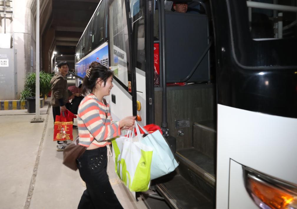 返崗人員抵達(dá)廣州南站后登上接駁大巴去往務(wù)工地。新華社發(fā)
