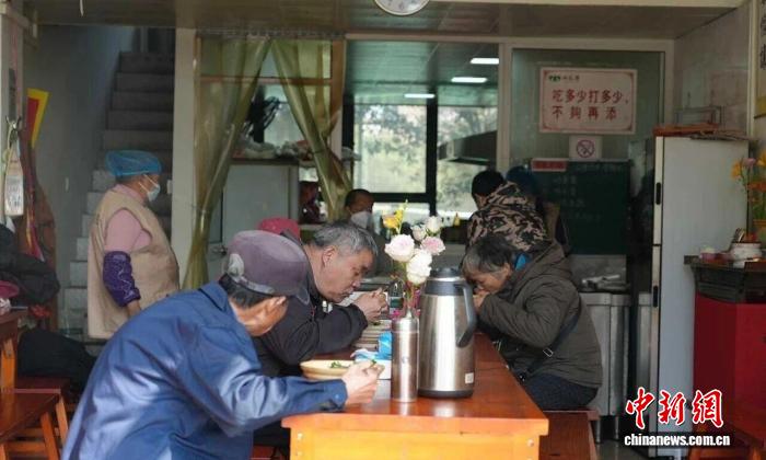 這家素食館開在當(dāng)?shù)蒯t(yī)院附近,來就餐的大多是周邊的環(huán)衛(wèi)工人、高齡或獨(dú)居老人,也有一些住院患者的家屬。