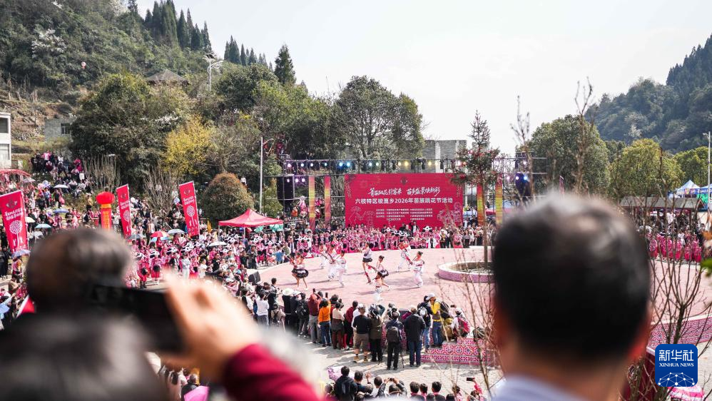 2月26日,在貴州省六盤水市六枝特區(qū)梭戛苗族彝族回族鄉(xiāng)高興村跳花場,苗族群眾在表演舞蹈。