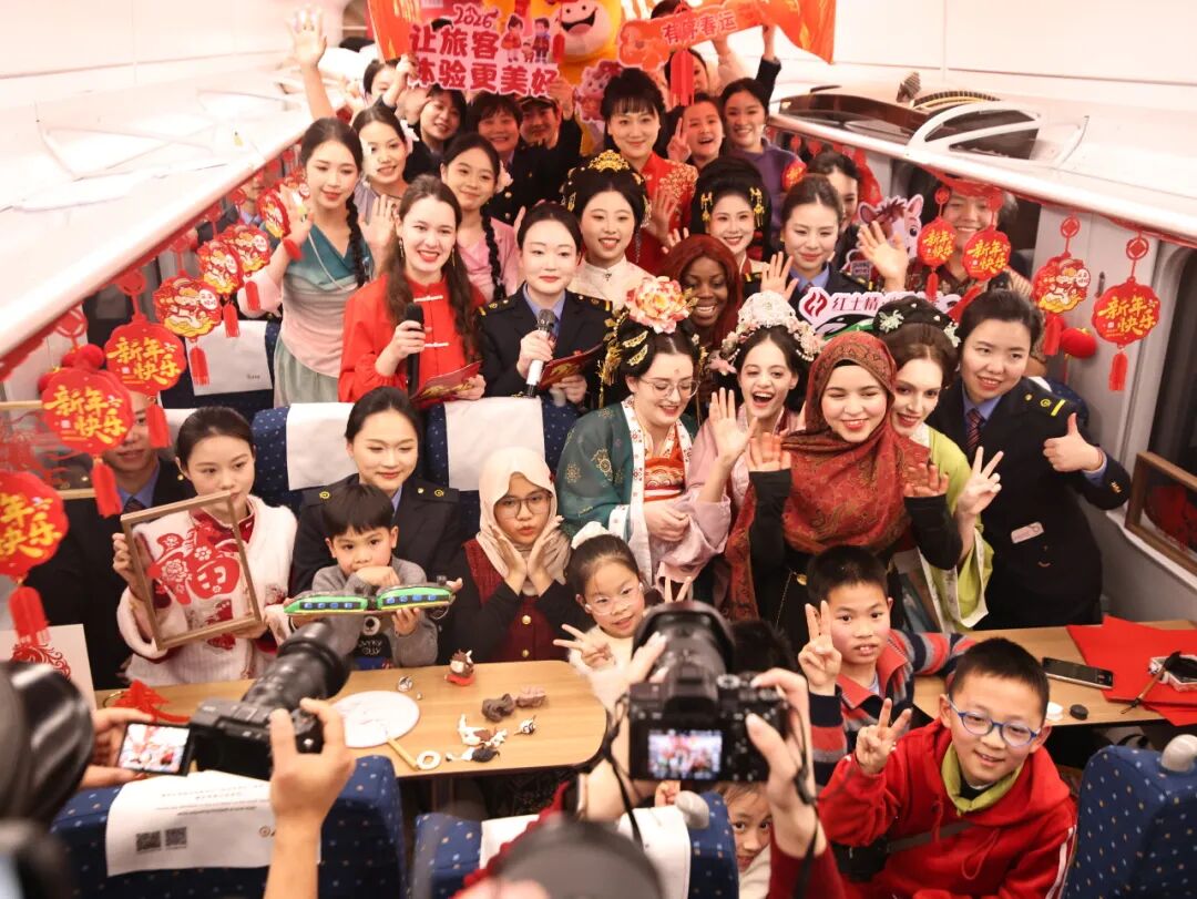 2月10日,D138次列車“紅土情·井岡山號(hào)”列車春晚精彩紛呈。