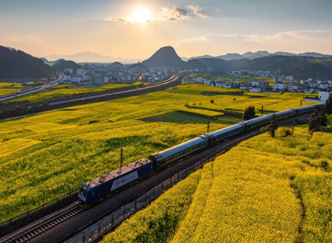 南昆鐵路的春運(yùn)旅途,被羅平的油菜花海溫柔包圍。暖陽(yáng)下,列車如游龍穿梭在無(wú)邊金浪里,花潮隨春風(fēng)起伏,暈染出層層柔光。遠(yuǎn)山含黛,村落隱在花影間,花香混著歸鄉(xiāng)的期盼,讓每一段歸途都盛滿春日的浪漫與溫暖。