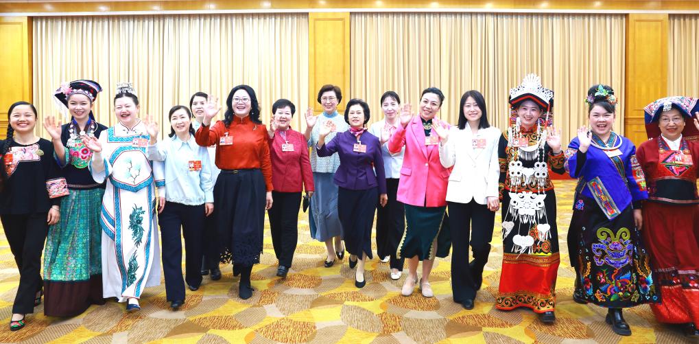 圖為貴州代表團(tuán)的女代表們在一起。(受訪者供圖)