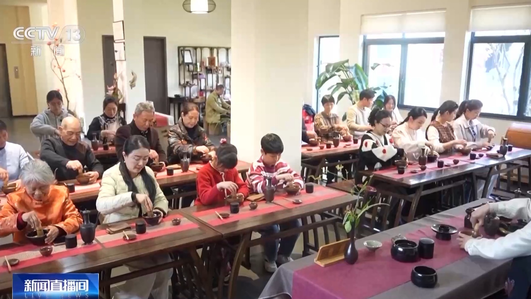 各地游客在指導(dǎo)下,學(xué)習(xí)注水、調(diào)膏、擊拂,以清水為墨、以茶湯為紙,慢慢寫出福字和茶字,體驗(yàn)茶百戲的奧妙。
