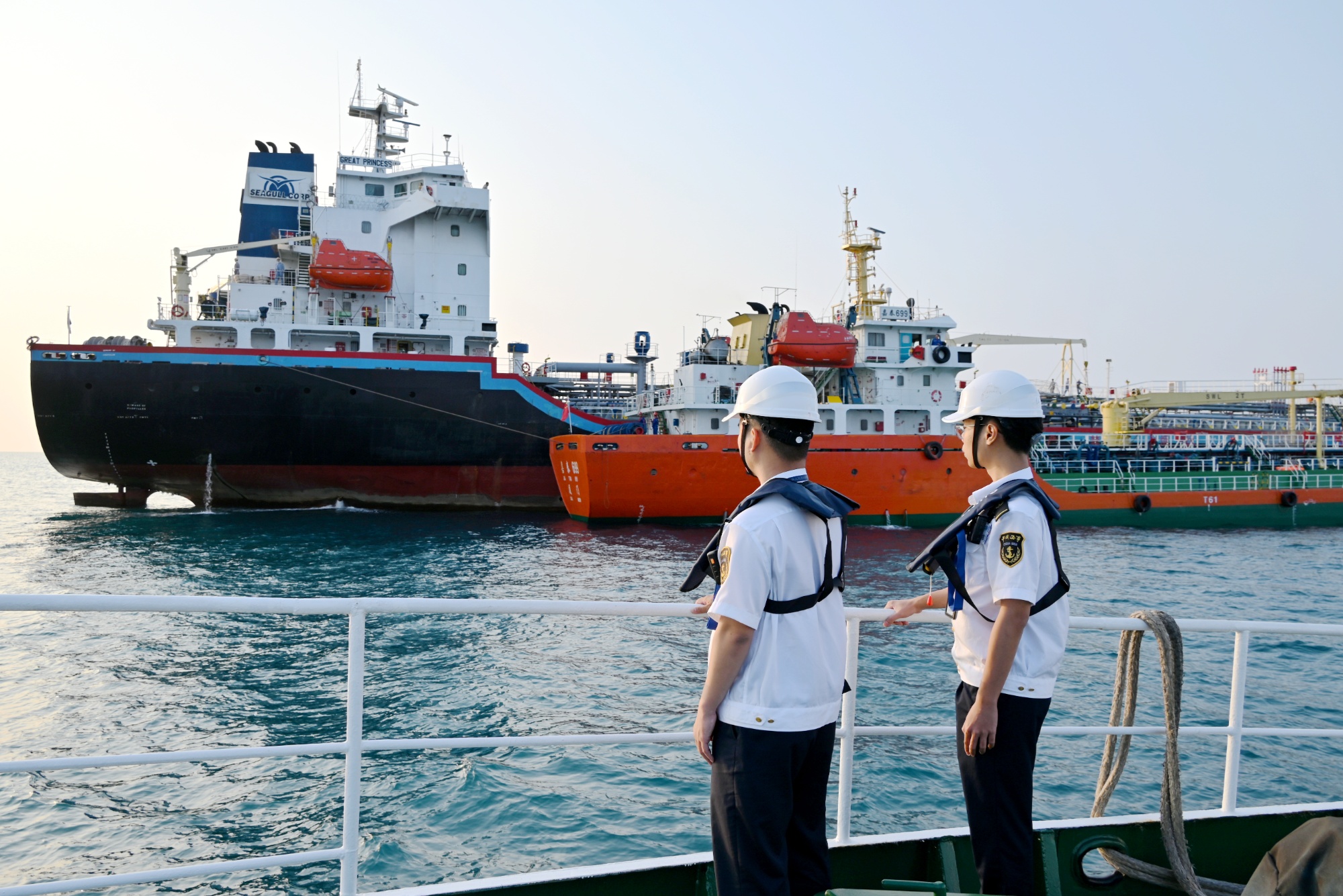3月18日,“嘉泰699”在洋浦1號(hào)外錨地為外籍船“GREAT PRICESS”完成加注燃料油(央廣網(wǎng)發(fā) 洋浦海事局供圖)