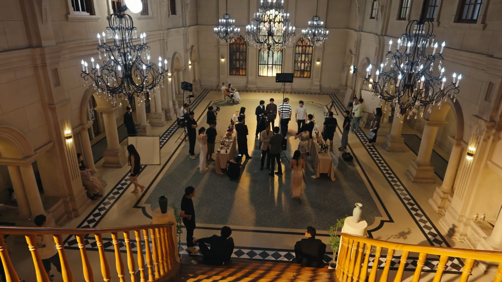 2025年7月,河南省鄭州市金水區(qū)一微短劇拍攝基地,某微短劇正在搭建的“宴會(huì)廳”場景中拍攝。新華社記者楊金鑫 攝